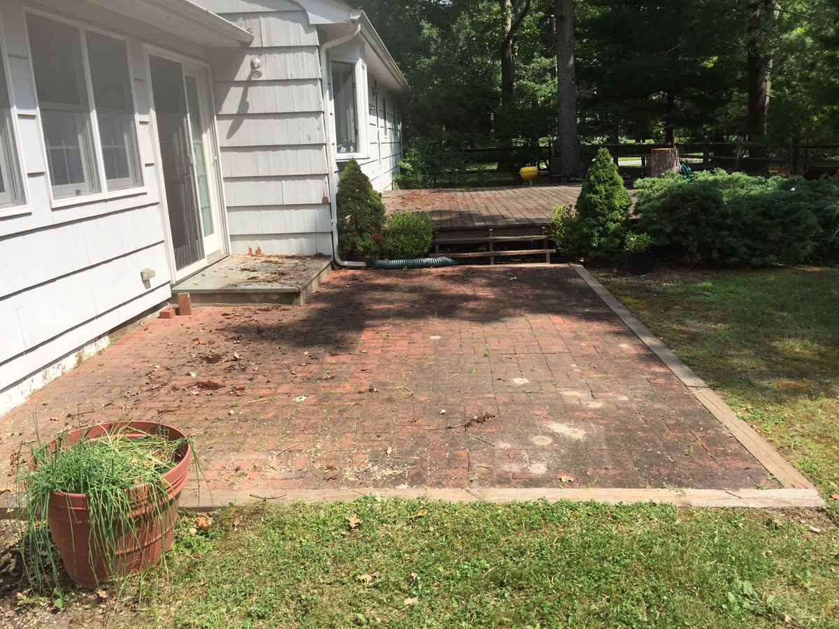 Brick patio cleaning, Roslyn NY. This homeowner was having trouble slipping and falling on the rear patio, our pressure washing experts explained it was the algae casing the problem.